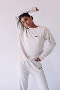 Subtly printed with a tiny SPRWMN logo,theOff White sweatpants are designed for a relaxed fit from cotton-fleece with a soft handle. These sweatpants willkeepyou feeling comfy and cozy without compromising on style.They look very chic with the matching logo sweatshirt. COLOR:Off white 50% Polyester 38% Cotton 12% Rayon Fit true to size Model wears size Small 29" inseam, 13" rise, 9" leg opening Machine wash cold, tumble dry low*Beware of slight pilling due to the nature of the fabric PRODUCT DETAILS - 50% Polyester 38% Cotton 12% Rayon - Fit true to size - Model wears size Small - Machine wash cold, tumble dry low