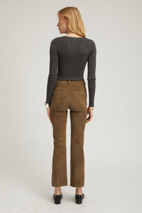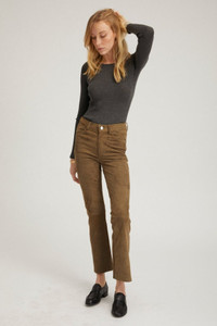 OLIVE SUEDE 5 POCKET ANKLE FLARE PANTS