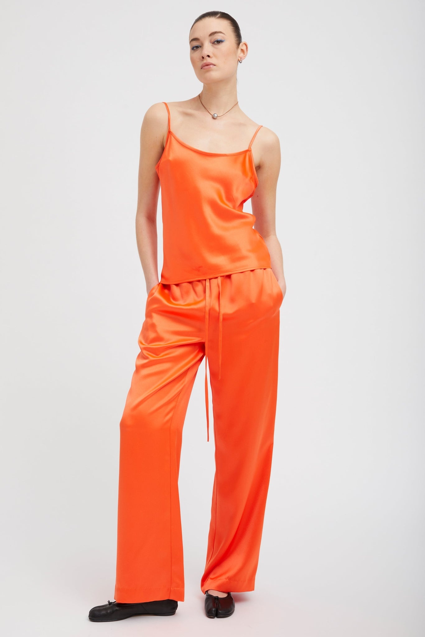 Made from lightweight and luxurious silk, our Kauai pants will keep you feeling cool and airy on any occasion. Featuring a comfortable, loose fit with a stretchy drawstring waistband for effortless pull-on wear. Pair with the matching tank for the perfect look. COLOR: Orange FIT & MEASUREMENTS - Fits true to size - 31.5" inseam - Kennedy is 5'11 & wears size Small PRODUCT DETAILS - 100% Silk - Drawstring waistband, pull-on fit - Side slit pockets - Dry clean only