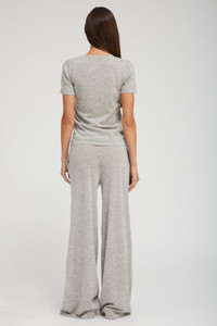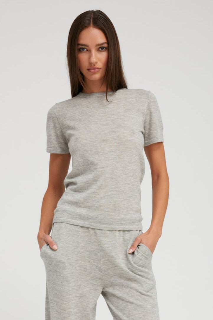Made from our high-quality, ultrasoft Mongolian Cashmere, this classic tee is finely knitted for a lightweight feel making it a year-round essential. This crewneck is designed for a slightly looser fit and effortlessly drapes like a regular tee. Style with the matching cashmere pants for an elevated lounge look or wear with anything from jeans, to leather trousers — the options are endless. COLOR: Oxford FIT & MEASUREMENTS - Fits true to size - Anna is 5'11 & wears size Small PRODUCT DETAILS - 100% Cashmere - Sustainably grown, organic yarn - Classic crew neckline - Dry clean only