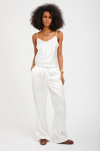 Designed from luxurious, featherweight silk, this cami is an effortless staple you need in your closet. Perfect for layering or wearing on its own, pair with the matching silk pants or with your favorite SPRWMN denim for an ultra chic look. COLOR: Pearl FIT & MEASUREMENTS - Fits true to size - Mika wears size Small PRODUCT DETAILS - 100% Silk - Dry clean only