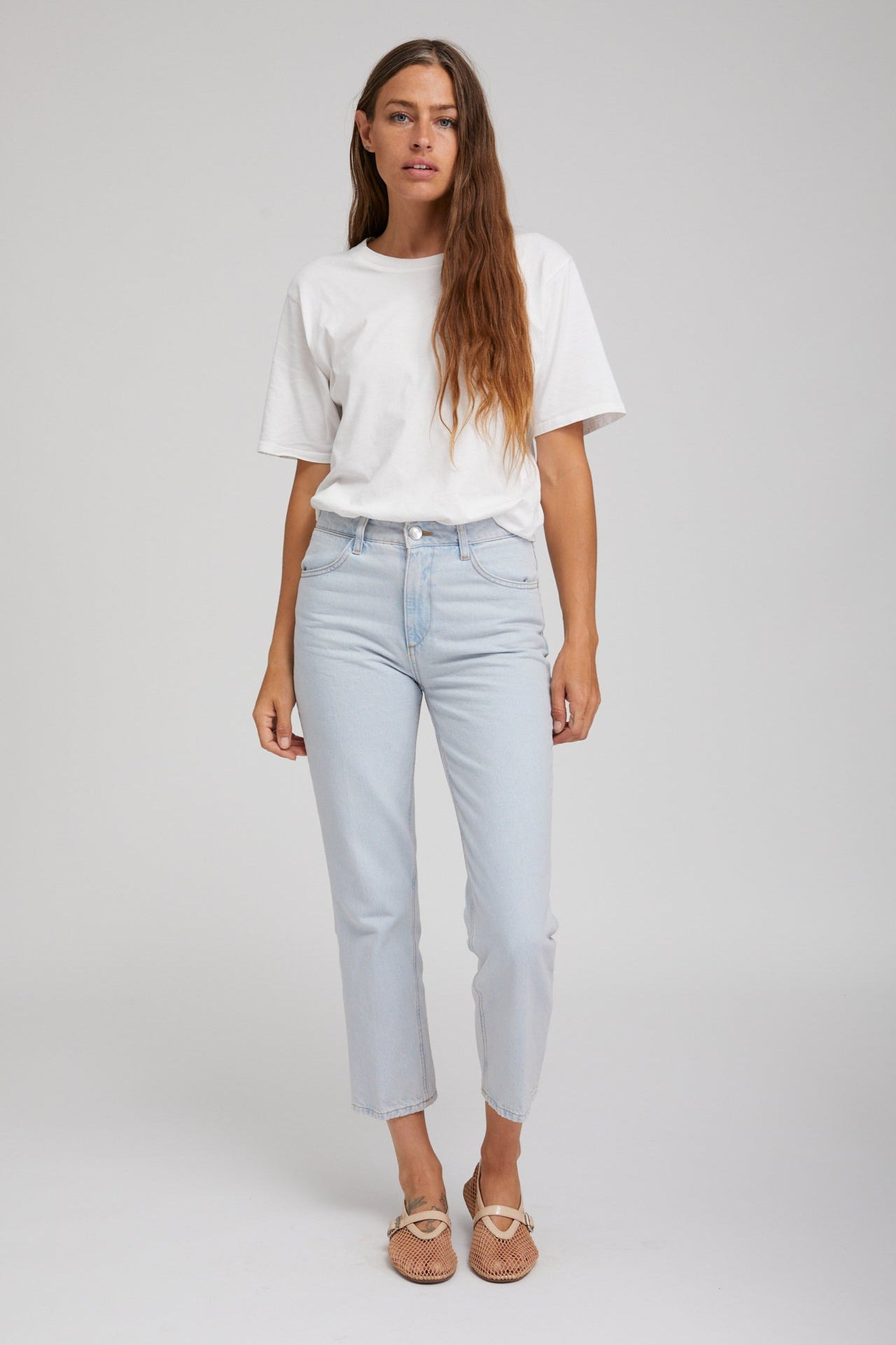 A high-rise, straight leg jean that hugs the natural waist. Featuring a relaxed fit down the leg, ending with a clean hem above the ankle. Featuring our signature back V and chic faux-croc embossed label, these pants will quickly become your favorite pair of jeans.Wear these with a tank and leather blazer, or a tucked in oversized tee. WASH: Piaf - Ultra Light Was 100% Cotton - Non-Stretch Denim Japanese Denim Machine wash cold, tumble dry low Front zipper & button closure Fits true to size 26" inseam, 10.5" rise, 15.5" leg opening Kelsey wears size 26 FIT & MEASUREMENTS - Fits true to size - 26" inseam, 10.5" rise, 15.5" leg opening - Kelsey wears size 26 PRODUCT DETAILS - 100% Cotton - Non-Stretch Denim - Japanese Denim - Machine wash cold, tumble dry low - Front zipper & button closure