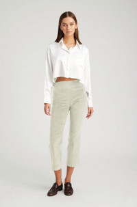 Our best selling high-waisted crop flare silhouette made in a soft and breathable stretchy corduroy fabric. Made with our signature Japanese elastic waistband with a pull-on fit and slight flare above the ankle. COLOR:Sable 77% Cotton, 22% Tencel, 1% Elastic Pull on fit Elastic waistband Machine wash cold, tumble dry low Fits true to size 25 1/2" inseam, 8" leg opening Model wears a size small PRODUCT DETAILS - 77% Cotton, 22% Tencel, 1% Elastic - Fit true to size - Inseam 25 1/2" - Machine wash cold, tumble dry low - Model wears size Small