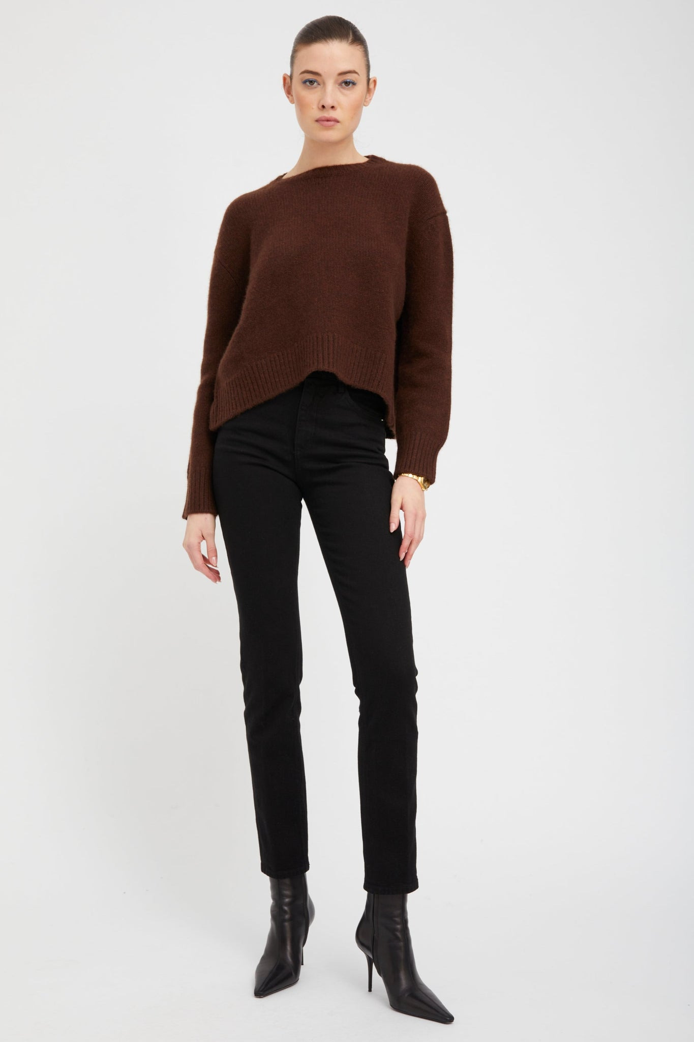 Meet the ultimate slim-straight jean made from a stretch-denim fabric that moves with you and won't lose its shape.Featuring our signature back V and chic faux-croc embossed label, these pants will quickly become your favorite pair of jeans. A high-rise straight leg jean with a slim fit at the calf, this classic silhouette hugs the waist and thigh, butis relaxed from the knee-down. These work perfectly with ankle bootsor sneakers alike. WASH:Stevie - True black FIT & MEASUREMENTS - Fits true to size - High-rise, slim fit - 31.5" inseam, 10.5" rise, 12" leg opening - Model wears size 26 PRODUCT DETAILS - 98% Cotton, 2% Elastane - Stretch Denim - Italian Denim - Machine wash cold, tumble dry low - Front zipper & button closure