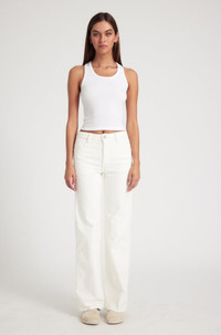 The Carpenter pant; now designed in a soft yet sturdy, wide-ridge corduroy fabric, features utility pockets and a hammer-loop detail, for a vintage work-wear vibe. With a mid-rise relaxed fit, this pant is made to sit comfortably at the hip for an effortless look. Wear with a baby tee or a cashmere sweater for the perfect laid-back look. COLOR: White FIT & MEASUREMENTS - Oversized fit - Size down if in-between sizes or want a tighter fit - 33" inseam,11" rise, 20" leg opening - Kiana is 5'11 & wears size Small PRODUCT DETAILS - 77% Cotton, 22% Tencel, 1% Elastic - Machine wash cold, tumble dry low