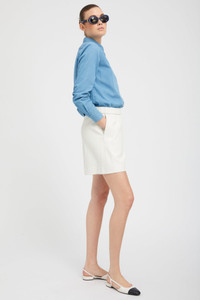 Everyone needs a classic leather short. Made in our signature ultra soft plonge leather, our Culotte Shorts are fitted at the waist with an A-line shape for an effortlessly flattering look that highlights your natural waistline. Pair with a tucked in tee or button down for an ultra chic look. COLOR: White FIT & MEASUREMENTS - Fits true to size - 7" inseam, 13" rise - High-rise - Our lambskin gives naturally over time; if in-between sizes, size down - Kennedy is 5'11 & wears size Small PRODUCT DETAILS - 100% French Lambskin - Stretch Leather - Cotton-Lycra lining - Eco friendly, hypoallergenic and chrome-free vegetal dyed - 2" elastic waistband, pull-on fit - Leather specialist clean only
