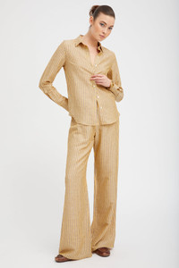 YELLOW INDIGO STRIPE LINEN FONDA BUTTON DOWN