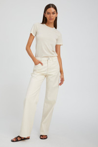 Our Carpenter denim, a mid-rise relaxed fit that is designed to sit comfortably at the hips. Featuring our signature V-back belt loops and faux croc embossed label for a chic detail that accentuates your natural waist and made from 100% Cotton for a classic denim look and feel. This jean features utility pockets and a hammer-loop detail for a vintage work-wear vibe. Wear these casually with a tee and sneakers, or dress them up by adding a blazer and heels. WASH: Yoko - Natural Cream FIT & MEASUREMENTS - Oversized fit, Size down if in-between sizes or want a tighter fit - 33" inseam, 11" rise, 20" leg opening - Kiana is 5'11 & wears size 26 PRODUCT DETAILS - 100% Cotton - Non-Stretch Denim - Japanese Denim - Machine wash cold, tumble dry low - Front zipper & button closure