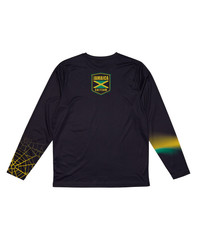 This lightweight long-sleeve gets the Jamaican Ski Team treatment, featuring a custom badge on the center back and a gradient bug logo on the center chest. This light layer will perform year-round as a great baselayer under a warm jacket or a sun shirt come spring. - 88% Recycled Polyester/12% Elastane 4-way stretch knit with UPF 50 sun protection - LS crew neck - Regular fit - 38A033500_BLK