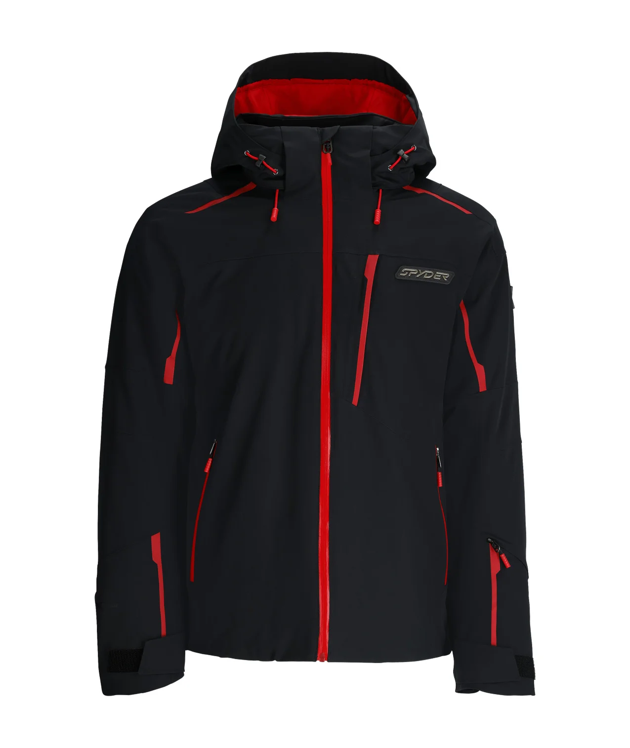 The Leader has been a pillar in the Spyder line for decades. This jacket features 4-way stretch EXO SHIELD 30K/20K fabric, which provides high-level protection and functionality. It's warm and waterproof with 100 grams of PrimaLoft® Black ECO insulation and sealed seams. The Leader jacket excels on the slopes with thoughtful details like a removable helmet-compatible hood, YKK® AquaGuard® zippers, and underarm ventilation. - 100% RECYCLED POLYESTER - EXO SHIELD 30K – 100% Recycled Polyester 4-Way Stretch Plain Weave with 30K/20K Laminate and DWR - PrimaLoft® Black ECO Insulation (100g) - Components are produced without PFAS chemicals - All seams sealed - Targeted interior stretch panels for full range of movement - Removable helmet compatible hood with adjustable opening - YKK® AquaGuard® center front zipper - YKK® AquaGuard® hand pocket zippers - YKK® chest pocket zipper - Underarm ventilation system with YKK® zippers - YKK® data card pocket zipper - Removable powder skirt with snap-back feature - Spacer mesh padding at shoulders - YKK® reverse coil interior pocket zipper - Mesh goggle pocket - Chamois lens wipe - Adjustable cuff tabs - Interior stretch cuffs and thumbholes - Drawcord adjustable hem - CB Length: Size M: 29 1/2" - Fit: Standard - 38SA073514_BLK1