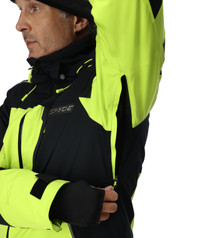 The Leader has been a pillar in the Spyder line for decades. This jacket features 4-way stretch EXO SHIELD 30K/20K fabric, which provides high-level protection and functionality. It's warm and waterproof with 100 grams of PrimaLoft® Black ECO insulation and sealed seams. The Leader jacket excels on the slopes with thoughtful details like a removable helmet-compatible hood, YKK® AquaGuard® zippers, and underarm ventilation. - 100% RECYCLED POLYESTER - EXO SHIELD 30K – 100% Recycled Polyester 4-Way Stretch Plain Weave with 30K/20K Laminate and DWR - PrimaLoft® Black ECO Insulation (100g) - Components are produced without PFAS chemicals - All seams sealed - Targeted interior stretch panels for full range of movement - Removable helmet compatible hood with adjustable opening - YKK® AquaGuard® center front zipper - YKK® AquaGuard® hand pocket zippers - YKK® chest pocket zipper - Underarm ventilation system with YKK® zippers - YKK® data card pocket zipper - Removable powder skirt with snap-back feature - Spacer mesh padding at shoulders - YKK® reverse coil interior pocket zipper - Mesh goggle pocket - Chamois lens wipe - Adjustable cuff tabs - Interior stretch cuffs and thumbholes - Drawcord adjustable hem - CB Length: Size M: 29 1/2" - Fit: Standard - 38SA073514_LIM