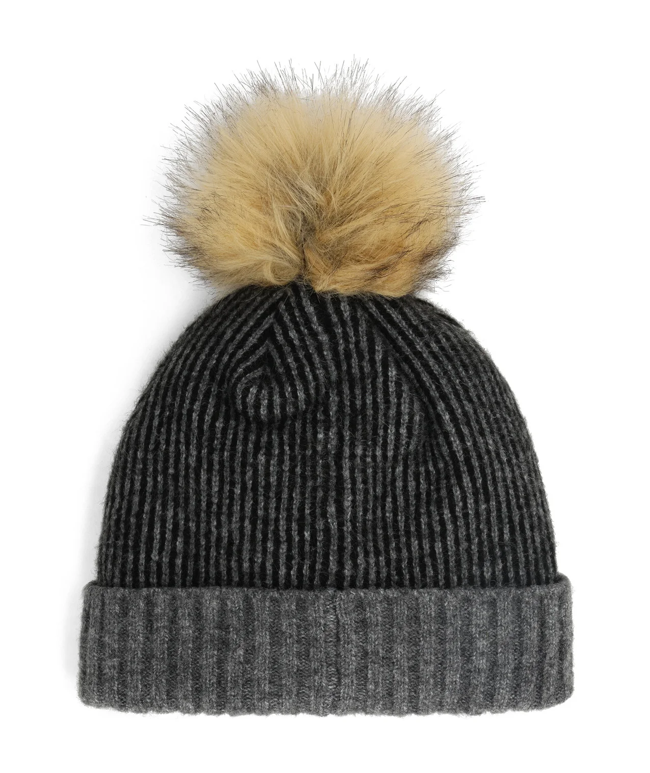This refined beanie features a faux fur pom on top and goes beautifully with any outfit. - 50% Recycled Nylon 25% Wool 25% Recycled Polyester - Fully lined interior - Faux Fur pom - 50% RECYCLED NYLON (POLYAMIDE) / 25% WOOL / 25% RECYCLED POLYESTER - 38E555430_BLK