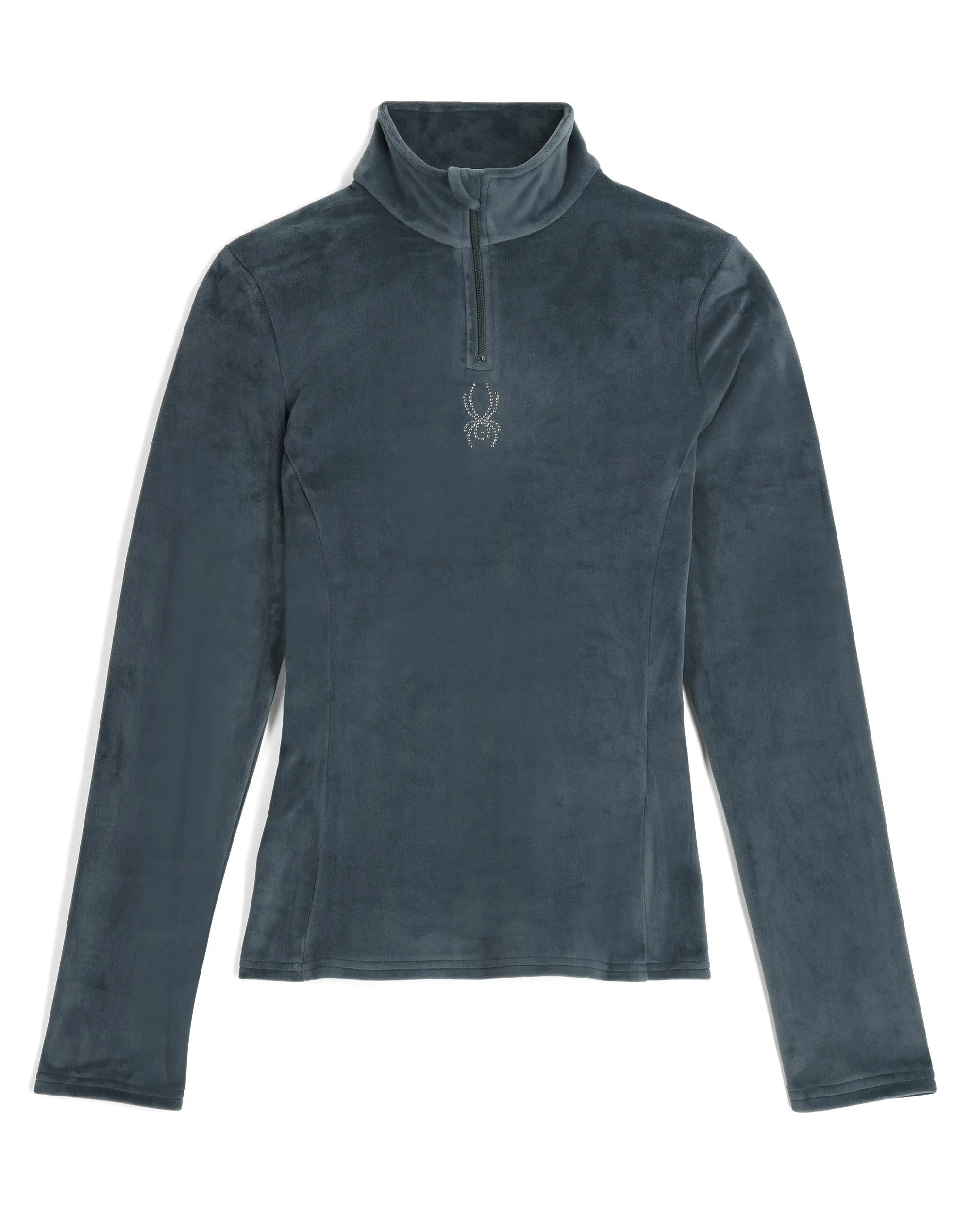 The Shimmer Bug 1/2 zip's name comes from the jeweled crystal Spyder logo below the zipper. This classic pullover comes in numerous colors that can be styled with any outfit, so you might need more than one. - 94% POLYESTER / 6% ELASTANE - 94% Polyester, 6% Elastane Stretch Velour Fleece - Components are produced without PFAS chemicals - YKK® Reverse coil center front zipper - Jeweled Crystal Shimmer Bug logo - CB Length: Size M: 25" - Fit: Fitted - 38B125310_SLB