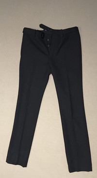 Condition: NEW, only tried once. Features: Button fly. 4 pockets (2 front and 2 back). Black colour Composition: Pants 100% wool Lining 100% cotton Measurements: Waist 43 cm / 17 inch Front rise 29 cm / 11.5 inch Upper thigh 30 cm / 11.75 inch Length 108 cm / 42.5 inch Inseam 85 cm / 33.5 inch Leg opening 19 cm / 7.5 inch