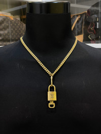 #G7 Authentic Louis Vuitton lock into a dope chain. Comes with unbranded 24 inchi/ 60 cm high-quality finish chain. Unbranded chain is in new condition KEYPAD LOCK = GOLD COLOUR ( 309 ) CHAIN= GOLD COLOUR