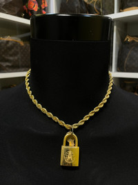 #G3 Authentic alviero martini lock into a dope chain. Comes with unbranded 17 inchi/ 44cm high-quality finish chain. Unbranded chain is in new condition KEYPAD LOCK = GOLD COLOUR CHAIN= GOLD COLOUR