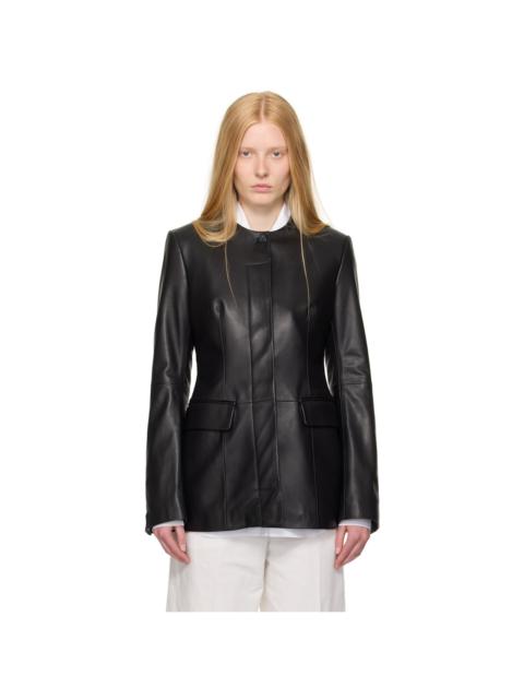Black Collarless Leather Jacket