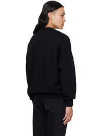 Knit merino wool sweater. · Rib-knit crewneck, hem, and cuffs · Intarsia logo at chest · Dropped shoulders Supplier color: Black/Black melange 100% merino wool. Made in Romania 252843M201000