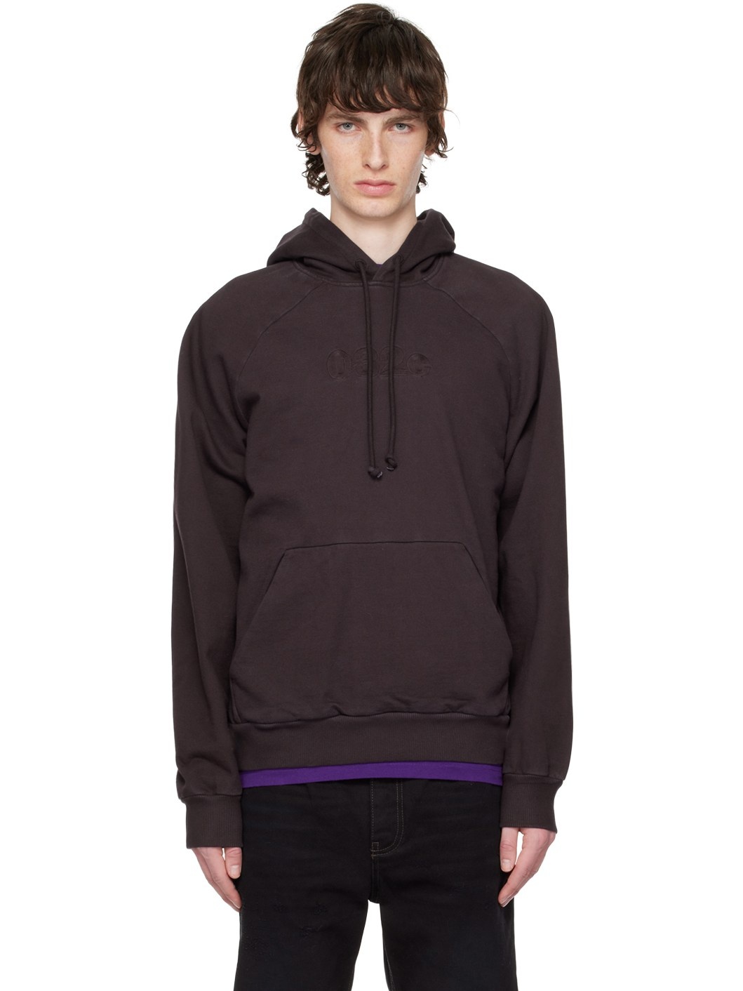 Organic cotton fleece hoodie. · Drawstring at hood · Logo embroidered at chest · Kangaroo pocket · Rib knit hem and cuffs · Raglan sleeves Supplier color: Dark plum 100% organic cotton.