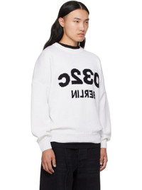 Knit merino wool sweater. · Rib-knit crewneck, hem, and cuffs · Intarsia logo at chest · Dropped shoulders Supplier color: White/Black 100% merino wool. Made in Romania 252843M201001