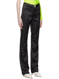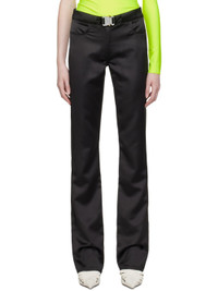 Stretch polyester satin trousers. · Integrated press-release belt · Four-pocket styling · Zip-fly · Logo-engraved silver-tone hardware Supplier color: Black Body: 97% polyester, 3% spandex. Lining: 67% acetate, 33% polyester. Made in Italy 231776F087001