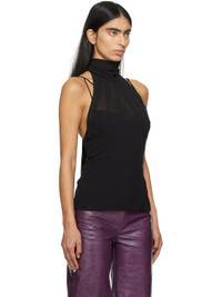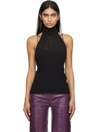 Semi-sheer polyester georgette tank top. · Draping at halter neck · Darts at front · Self-tie fastening at back collar · Zip closure at low back Supplier color: Black 100% polyester. Made in United Kingdom 242427F107000