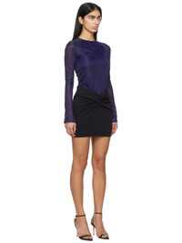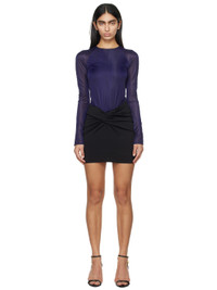 Semi-sheer polyester satin and stretch viscose- and nylon-blend jersey dress. · Paneled construction · Crewneck · Gathering at waist · Raglan sleeves · Concealed zip closure at back Supplier color: Ink/Black Body 1: 100% polyester. Body: 64% viscose, 33% nylon, 3% polyurethane. Made in United Kingdom 241427F052001