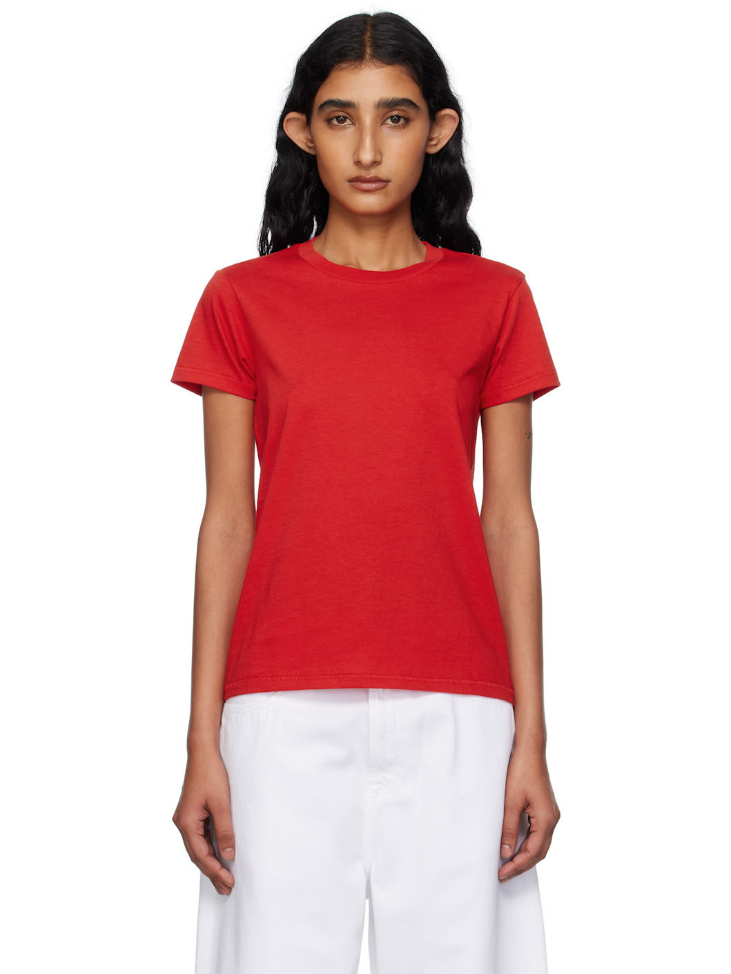 Washed cotton jersey T-shirt. Rib-knit crewneck. Supplier color: Pimento 100% cotton. Made in Peru 252446F110015