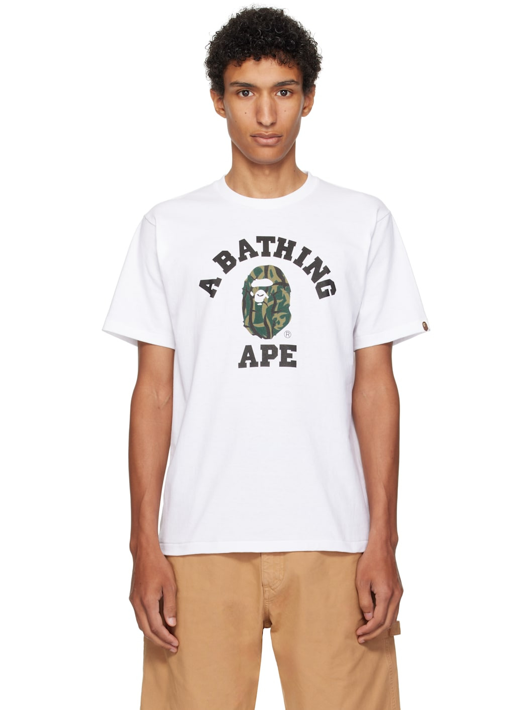 Cotton jersey T-shirt. · Rib-knit crewneck · Logo graphic printed at front · Logo flag at cuff Supplier color: White/Green 100% cotton. Made in Japan 251546M213130