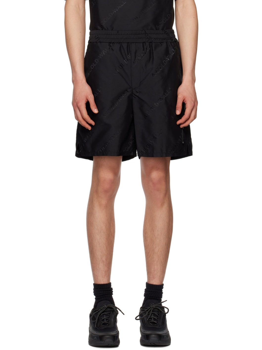 Nylon canvas shorts. Jacquard logo pattern throughout. · Elasticized waistband · Three-pocket styling · Zip-fly · Logo patch at front · Vented cuffs Supplier color: Black 100% polyamide. Made in Portugal 231891M193006