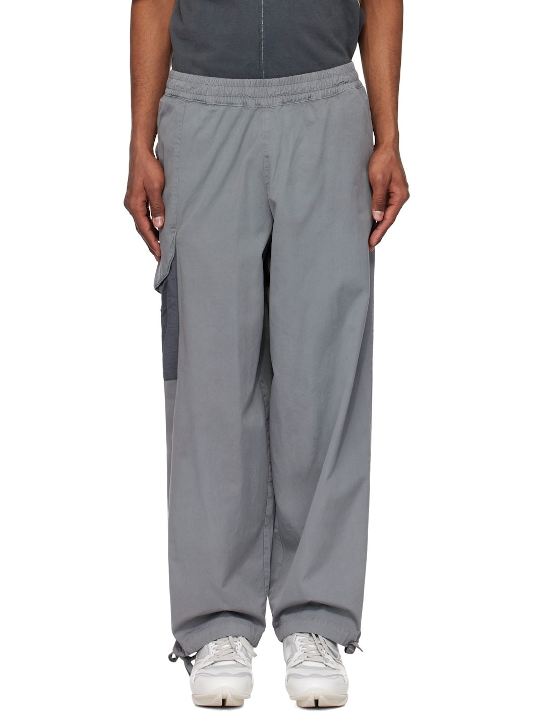 Plain-woven cotton cargo pants. · Drawstring at elasticized waistband · Two-pocket styling · Poplin flap pocket with printed logo at outseam Supplier color: Grey stone 100% cotton. Made in Portugal 251891M188002