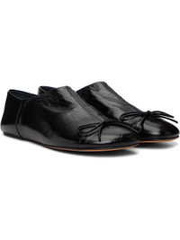 Crinkled leather ballerina flats. · Bow accent at vamp · Collapsible heel counter · Buffed leather lining · Leather sole with rubber injection Supplier color: Black Upper: leather. Sole: leather, rubber. Made in Spain 261526F118002