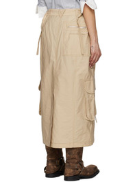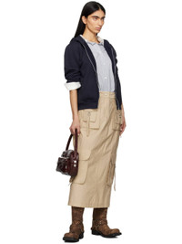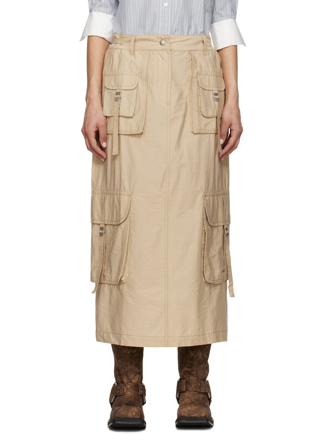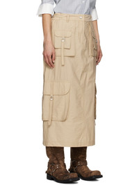 Crinkled lightweight cotton- and nylon-blend taffeta maxi skirt. · Mid-rise · Adjustable cinch tabs and belt loops at waistband · Five-pocket styling · Zip fly · Cargo pockets with cinch tab at front · Logo embroidered at back pocket · Central vent at back hem Supplier color: Beige 85% cotton, 15% nylon. Made in Portugal 251129F093004