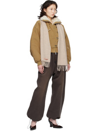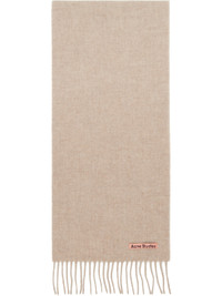 Rectangular wool flannel scarf. · RWS-certified wool · Logo patch at face · Fringed detailing at ends · L68" x W10.5" Supplier color: Oatmeal Melange 100% wool. Made in Italy 261129F028024