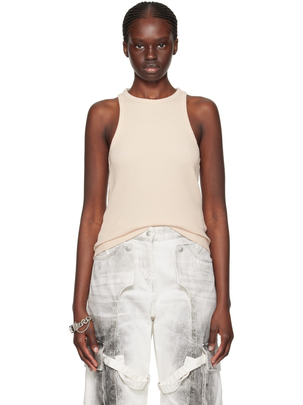 Waffle knit cotton tank top. · Rib knit crewneck and armscyes · Rubberized logo patch at back Supplier color: Soft pink 100% cotton. Made in Portugal 241129F110026