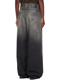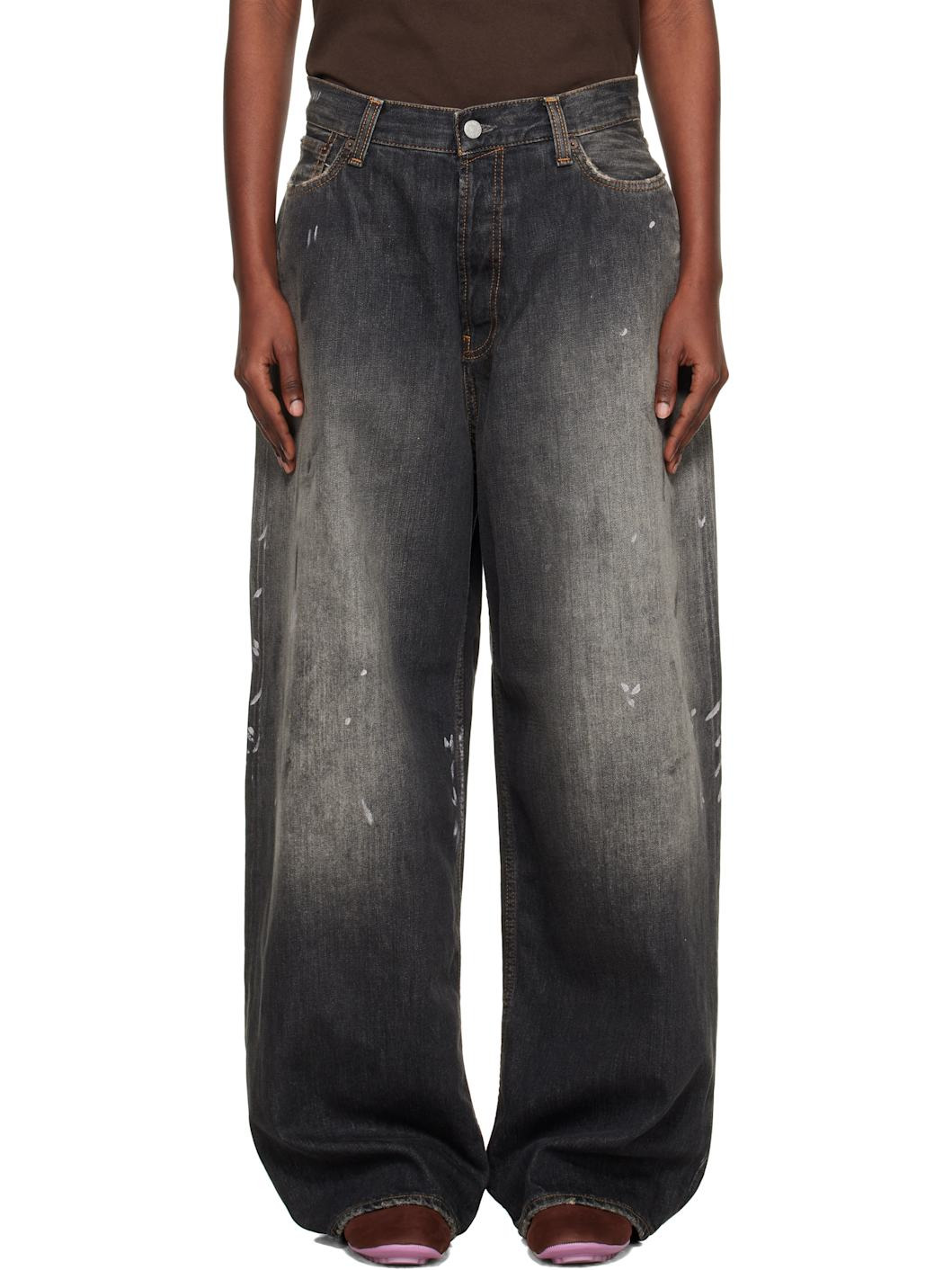 Non-stretch organic cotton denim jeans. · Fading, distressing, and paint splatter throughout · Belt loops · Five-pocket styling · Button fly · Logo patch at back waistband · Contrast stitching in tan Supplier color: Black 100% organic cotton. Made in Italy 252129F069031
