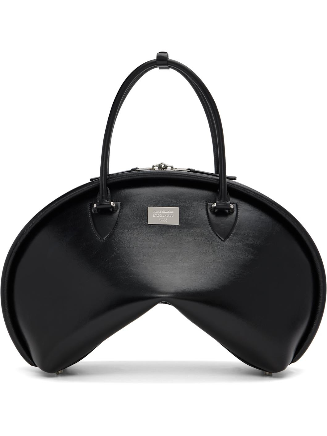 Structured crackled patent calfskin messenger bag. · Press-stud tab at rolled shoulder straps · Logo plaque at face · Detachable padlock-style clasp at back face · Bumper studs at base · Two-way zip closure · Zip pocket at interior · Buffed faux-leather lining · Logo-engraved silver-tone hardware · H11" x W19" x D10" Supplier color: Black Calfskin. Made in Italy 252129M170016
