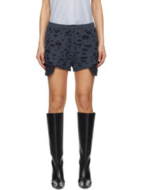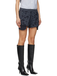 Cotton jersey shorts. Laser-cut distressing and fading throughout. · Concealed drawstring at elasticized waistband · Two-pocket styling · Raw edge at cuffs · Exposed pocket lining at cuffs Supplier color: Faded black 100% cotton. Made in Portugal 251129F088016