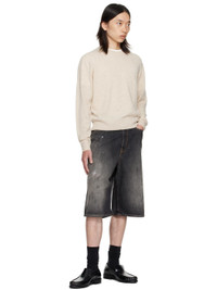 Non-stretch organic cotton denim shorts. · Fading, distressing, and paint splatter throughout · Loose-fit, straight-leg · Low-rise · Belt loops · Five-pocket styling · Button fly · Dropped inseam · Logo patch at back waistband · Contrast stitching in tan Supplier color: Black 100% organic cotton. Made in Italy 252129M193010