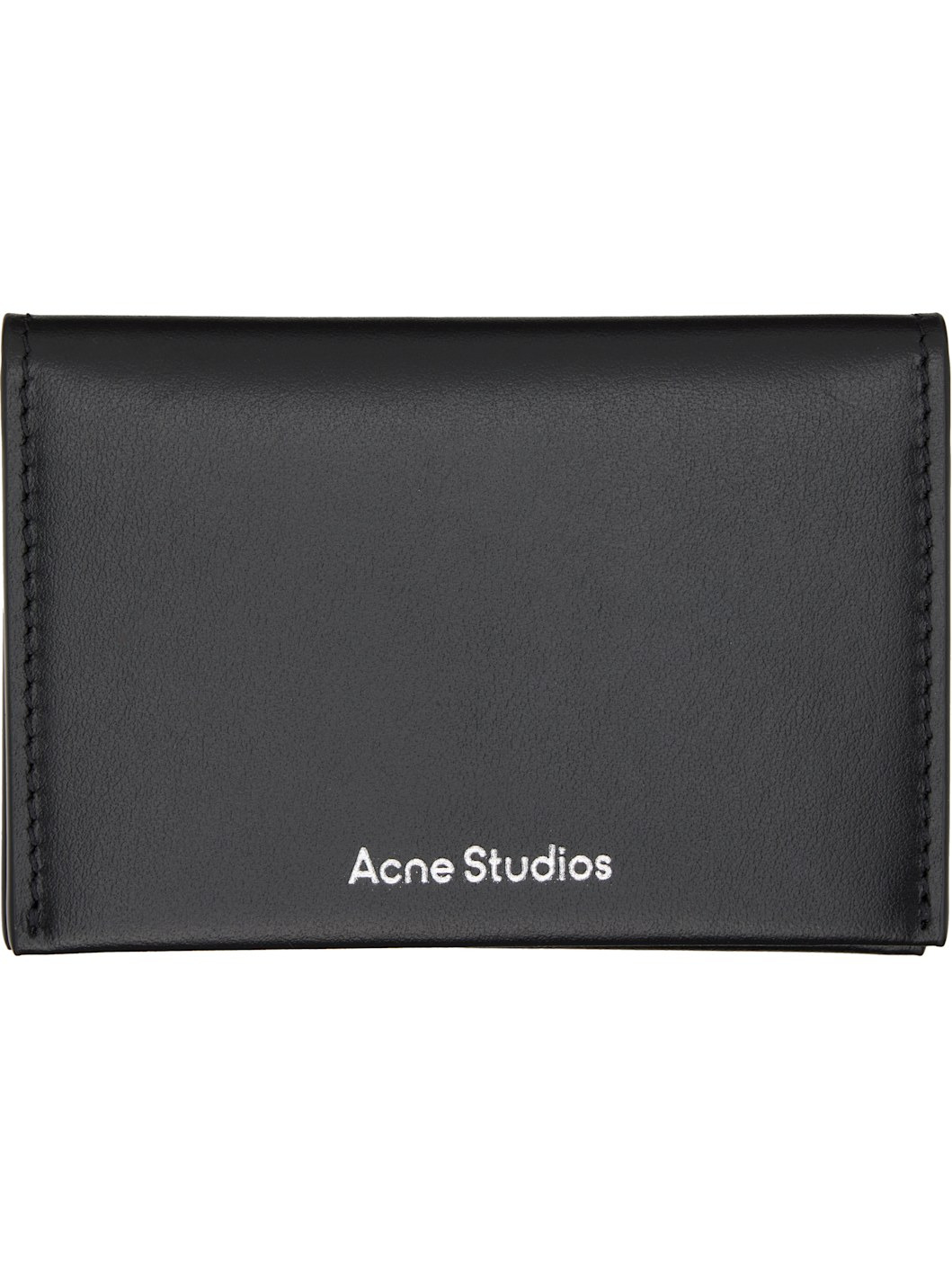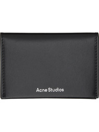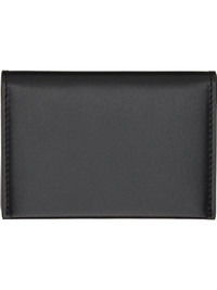 Buffed calfskin bifold card holder. · Logo bonded at face · Four card slots at interior · H2.75" x W4" x D0.5" Supplier color: Black Calfskin. Made in Italy 252129M163010