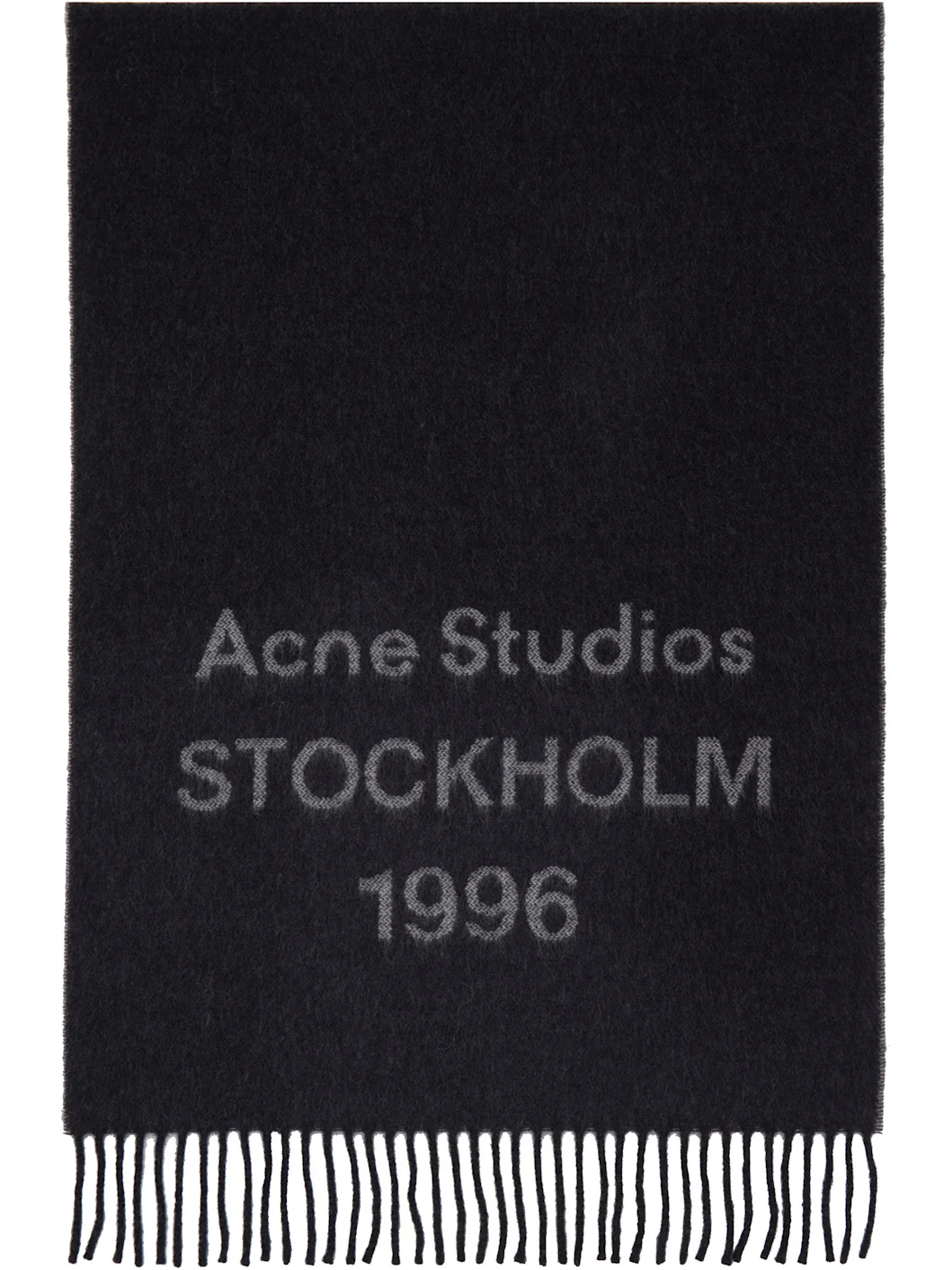 Rectangular RWS-certified wool flannel scarf. · Jacquard logo at face · Fringed detailing at ends · L78.75" x W17" Supplier color: Black/White 100% wool. Made in Italy 252129F028003