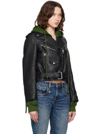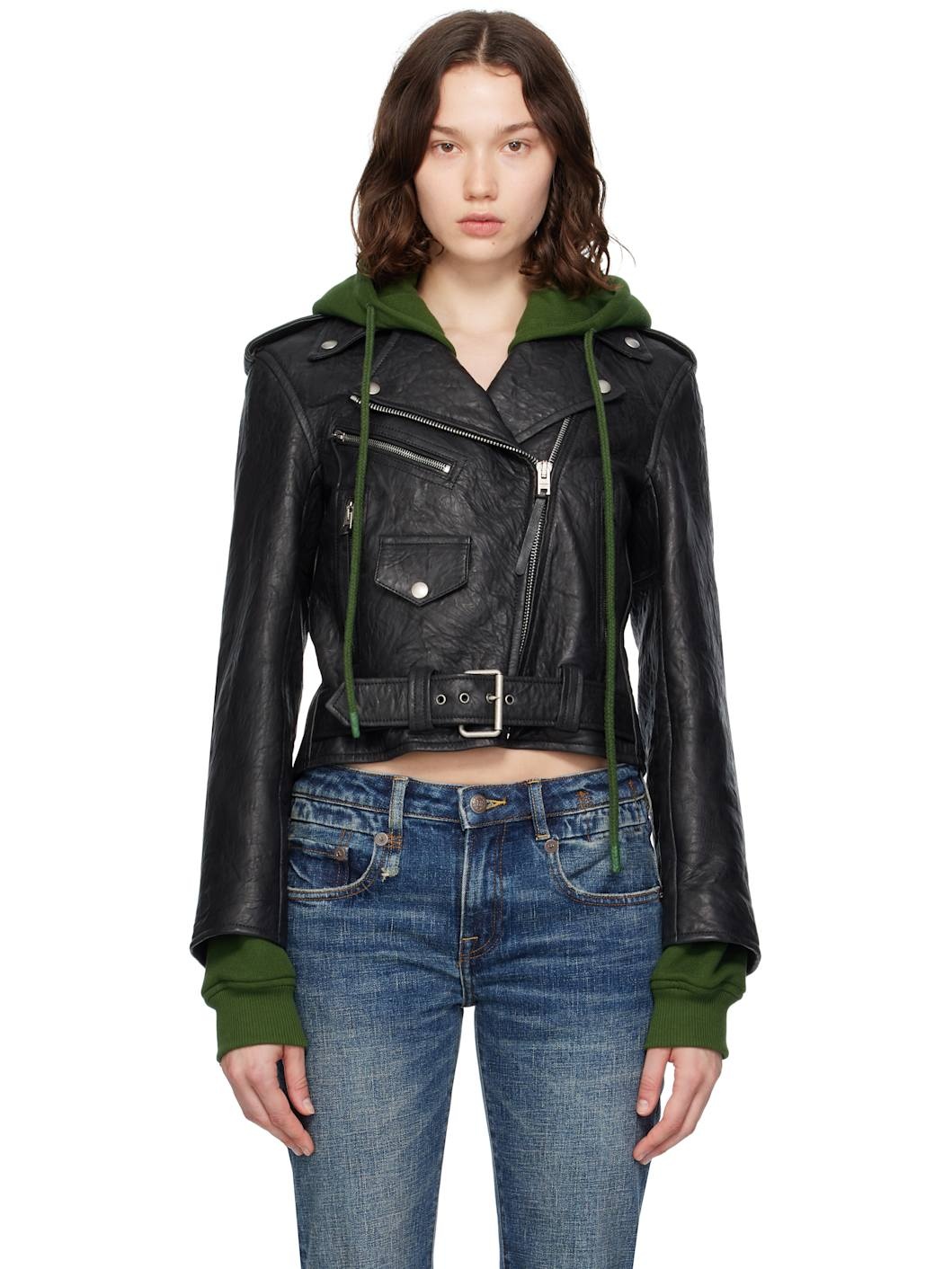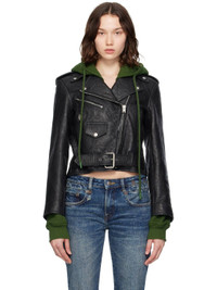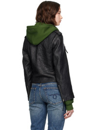 Crinkled lambskin and cotton jersey jacket. · Layered construction · Drawstring at hood · Press-stud fastening at notched lapel · Offset zip closure · Zip pockets and flap pocket · Pin-buckle strap at hem · Epaulets · Zip vent at sleeves · Rib-knit cuffs · Pleats at back · Viscose satin twill sleeve lining Supplier color: Black Body 1: 100% lambskin. Body 2: 100% cotton. Sleeve lining: 100% viscose. Made in Turkey 251129F064009