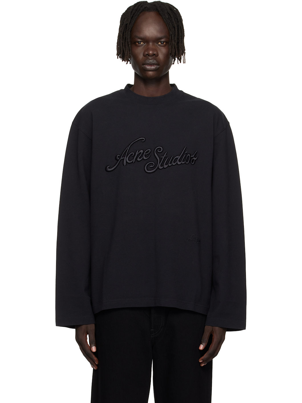 Cotton pique T-shirt. · Fading throughout · Rib-knit crewneck · Logo embroidered at front and hem · Tennis-tail hem · Dropped shoulders Supplier color: Faded black 100% cotton. Made in Portugal 252129M213016