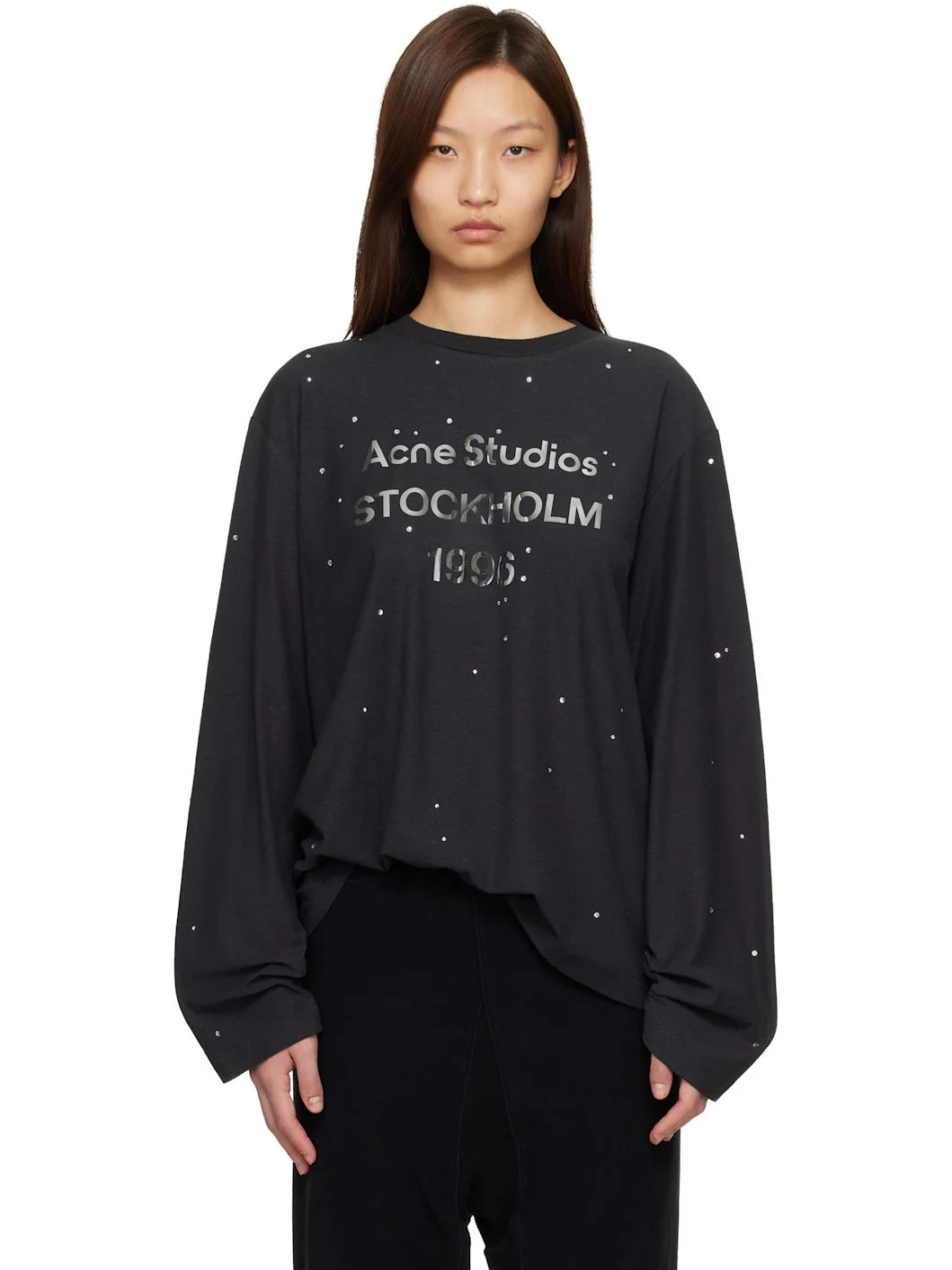 Cotton- and hemp-blend jersey T-shirt. · Rhinestones throughout · Rib-knit crewneck · Logo printed at front · Dropped shoulders Supplier color: Black 85% cotton, 15% hemp. Made in Portugal 261129F110004