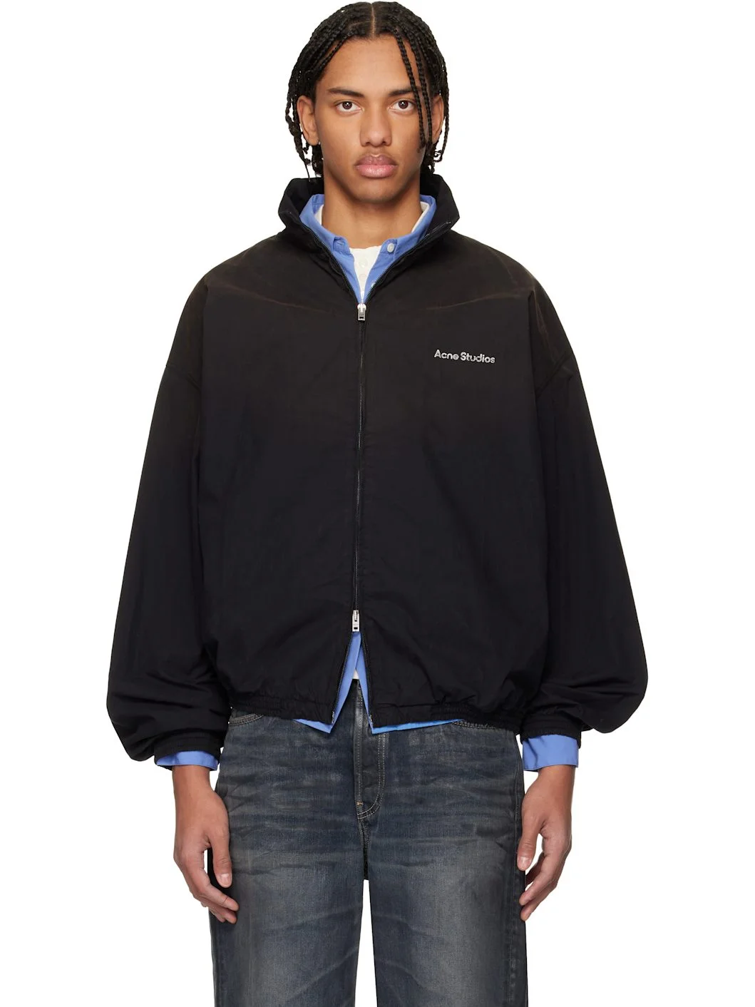 Peached cotton poplin jacket. · Stand collar · Two-way zip closure · Logo printed at chest and back · Elasticized hem and cuffs · Seam pocket at sides · Dropped shoulders · Full stretch mesh lining Supplier color: Black Body: 100% cotton. Lining: 82% nylon, 18% elastane. Made in Portugal 261129M180005
