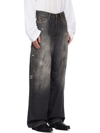 Non-stretch organic cotton denim jeans. · Fading, distressing, and paint splatter throughout · Loose-fit · Belt loops · Five-pocket styling · Button fly · Logo patch at back waistband · Contrast stitching in tan Supplier color: Black 100% organic cotton. Made in Italy 252129M186028