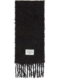Rectangular brushed knit mohair- and wool-blend scarf. · RMS-certified mohair, RWS-certified wool · Logo patch at face · Fringed ends · L105" x W10.5" Supplier color: Black melange 71% mohair, 21% wool, 8% nylon. Made in Italy 252129F028011
