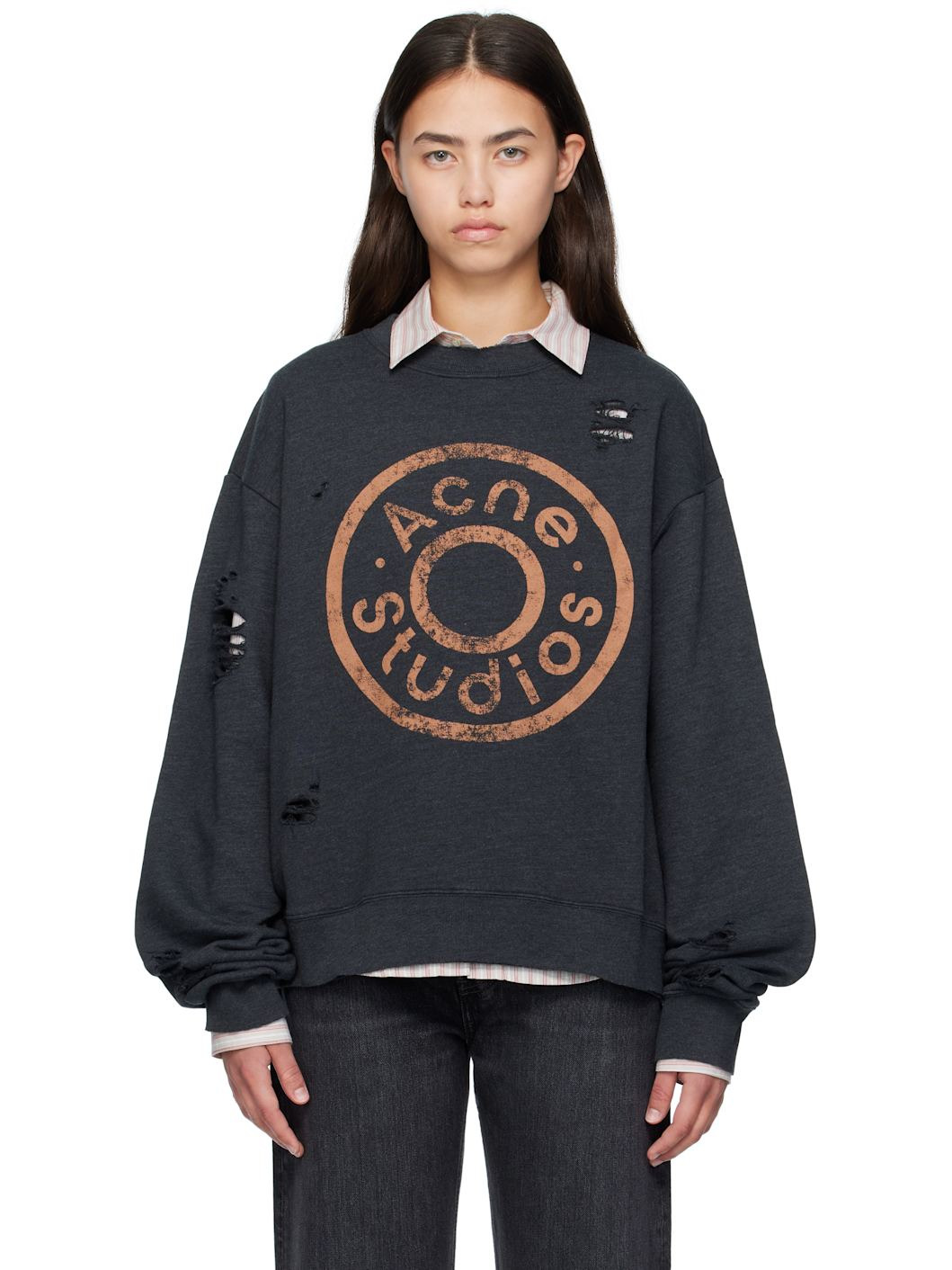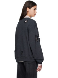 Organic cotton-blend fleece sweatshirt. · Rips throughout · Garment-dyed · Rib-knit crewneck, hem, and cuffs · Logo printed at front · Dropped shoulders Supplier color: Black Melange 85% cotton, 15% polyester. Made in Portugal 252129F098005