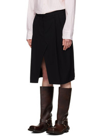 Stretch viscose twill midi skirt. · Belt loops · Four-pocket styling · Zip-fly · Pleats at front · Central vent at front and back hem Supplier color: Black 97% viscose, 3% elastane. Made in Portugal 251129F088018