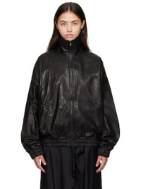 Grained lambskin jacket. · Funnel neck · Zip closure · Zip pockets at front · Elasticized hem and cuffs · Logo patch at back collar · Welt pocket at interior · Full logo-woven satin lining Supplier color: Black Body: 100% lambskin. Lining: 50% viscose, 50% acetate. Made in Turkey 252129F064004